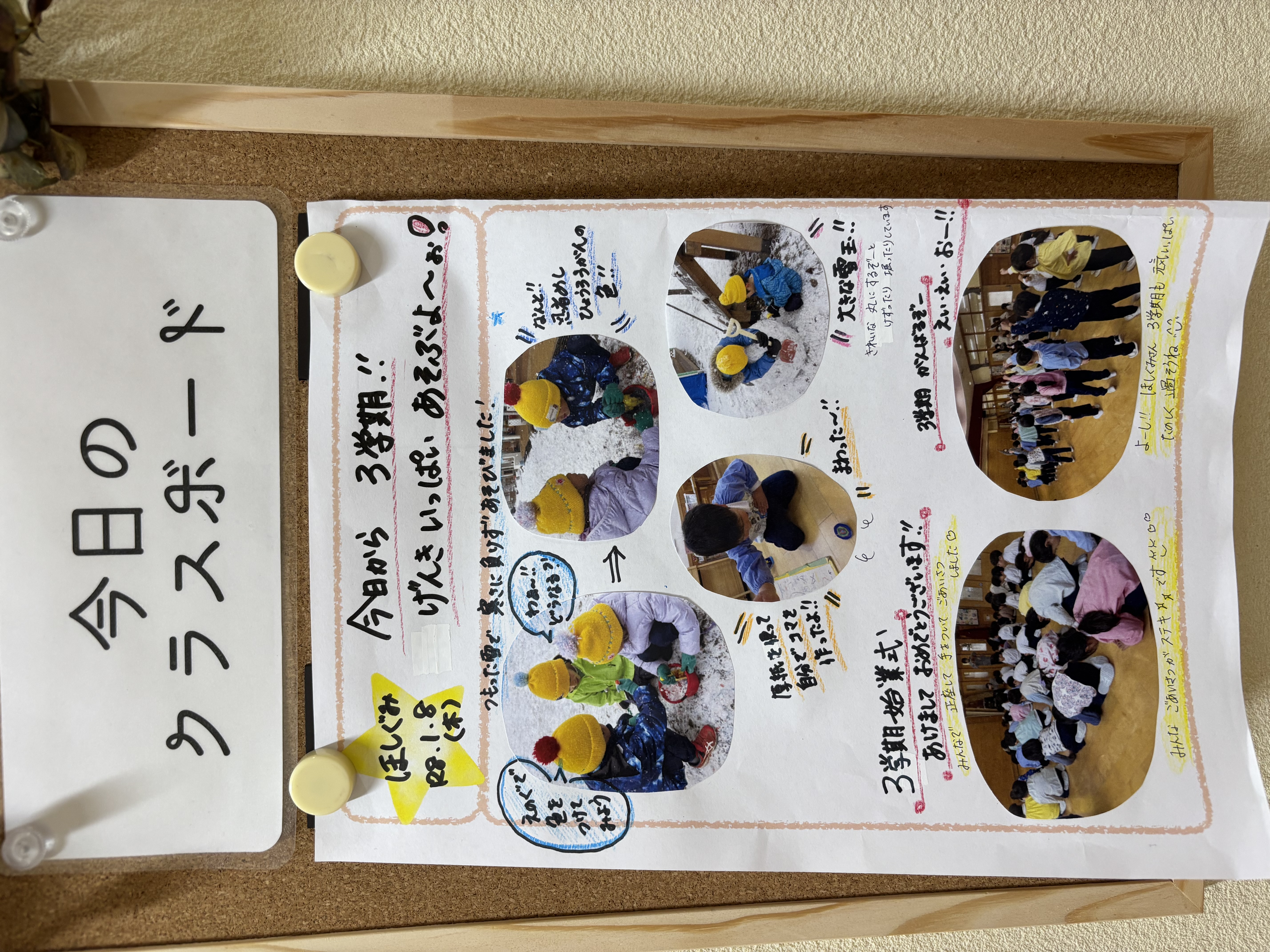 あけましておめでとうございます。本年もよろしくお願いします。始業式、にぎやかな子どもたちの声がもどってきました。今回はほし組さんのクラスボードです